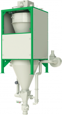 • Весовой бункер на раме, двухходовая сдвоенная секторная заслонка с пневмоприводом, подвесной конус, устройство раздува мешков