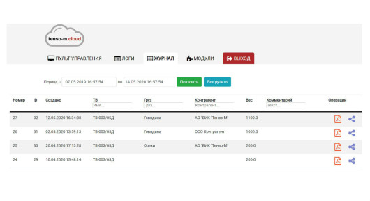 Удобный веб-сервис для мониторинга состояния весового оборудования в режиме реального времени из любой точки мира через Интернет. Предлагаются два решения: для руководителя предприятия – удаленный просмотр отчетности и журнала взвешиваний; для инженера службы КИПиА – оперативное отслеживание состояния работы весов. Поставляется бесплатно